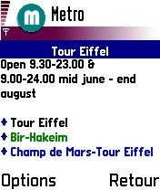 Places of interest that matches your string in the preferences.Tap  Options/Select or Fire select the place.Tap Options/Details  to get the details of the place.
