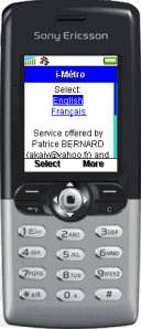 • WAP version (to use on your WAP phone): enter the address https://i-metro.mobi or https://metro.nanika.net/imetro.wml